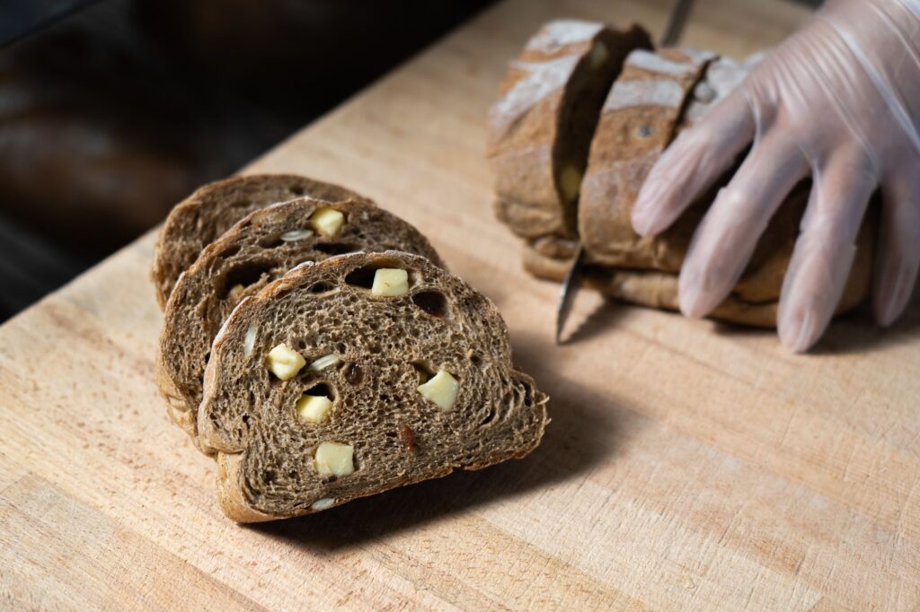 麵包出爐後需適當冷卻,讓內部結構穩定、口感最佳。此過程保留香氣與濕潤度,使麵包在切片時仍保持柔軟彈性