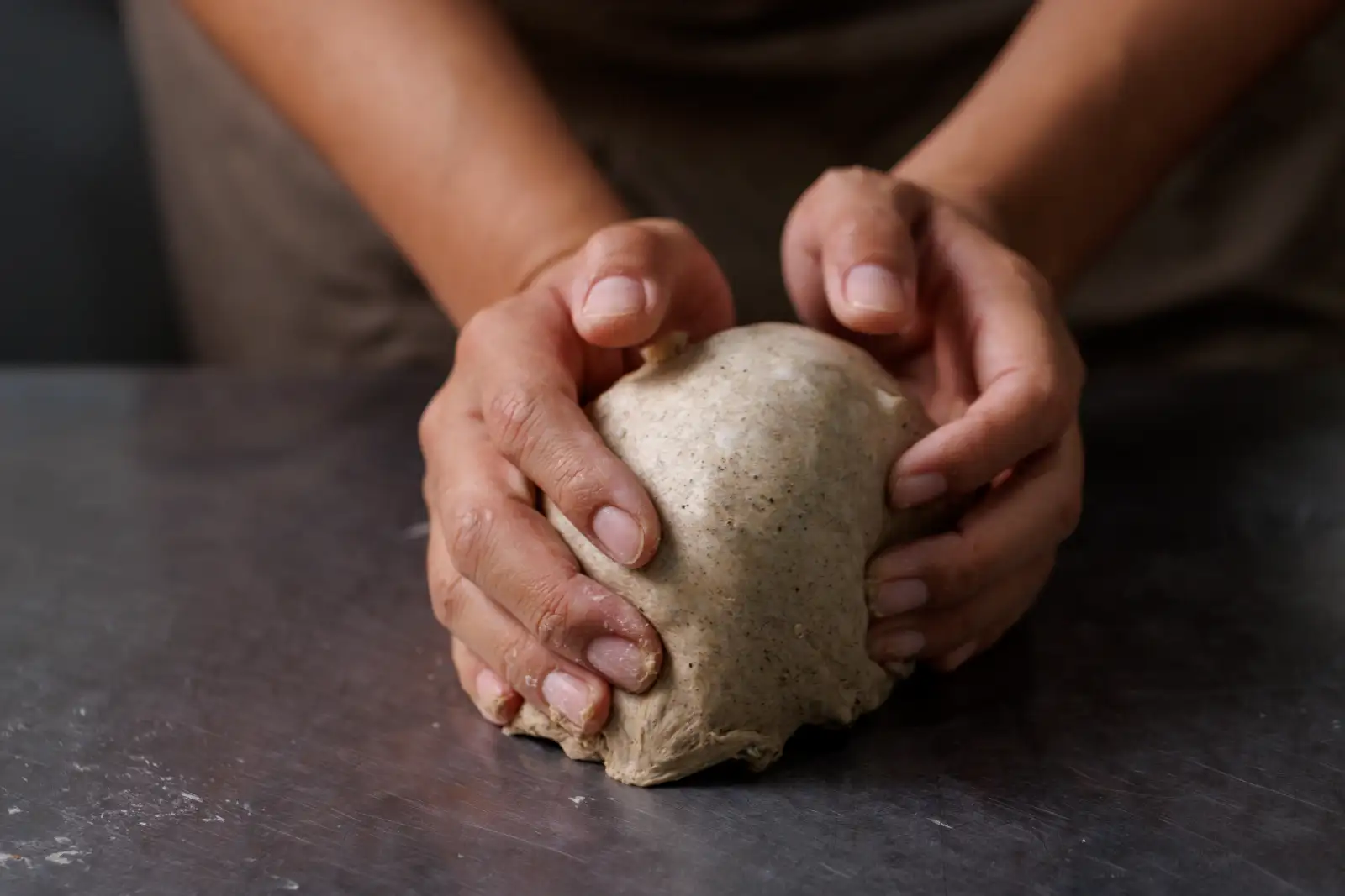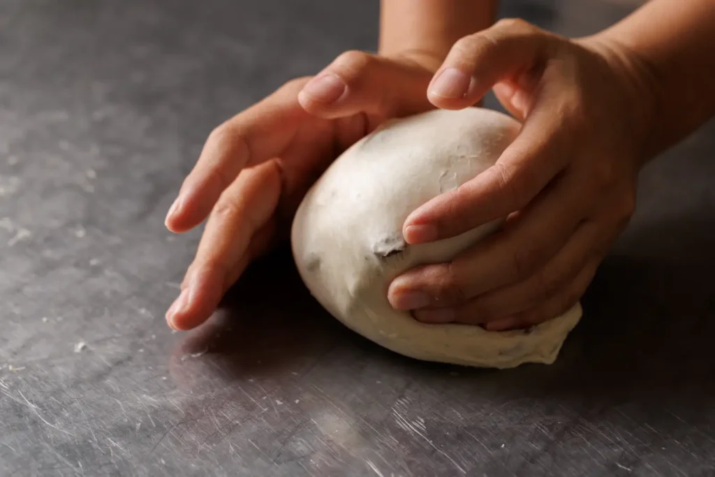 將麵糰揉製成團,形成彈性麵筋,並秤重分割成每顆麵包的標準份量。師傅的手感與溫度是機械無法取代的。